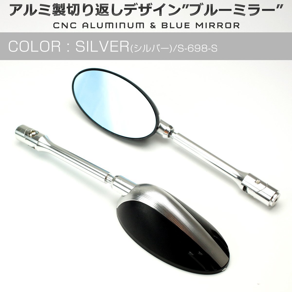 - アルミ製 切り替えしデザイン ミラー M8 M10 汎用 TYPE-A シルバー 防磁ブルーミラー S-698-S
