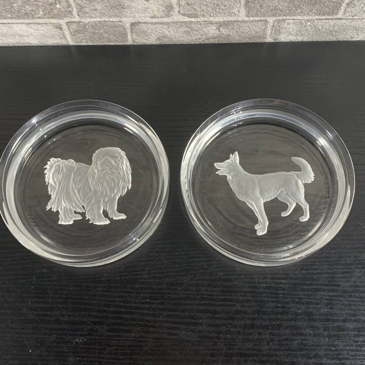 - usH-3207【HOYA CRYSTAL/ホヤクリスタル】クリスタルガラス レリーフ皿 犬柄 飾り皿 現状品