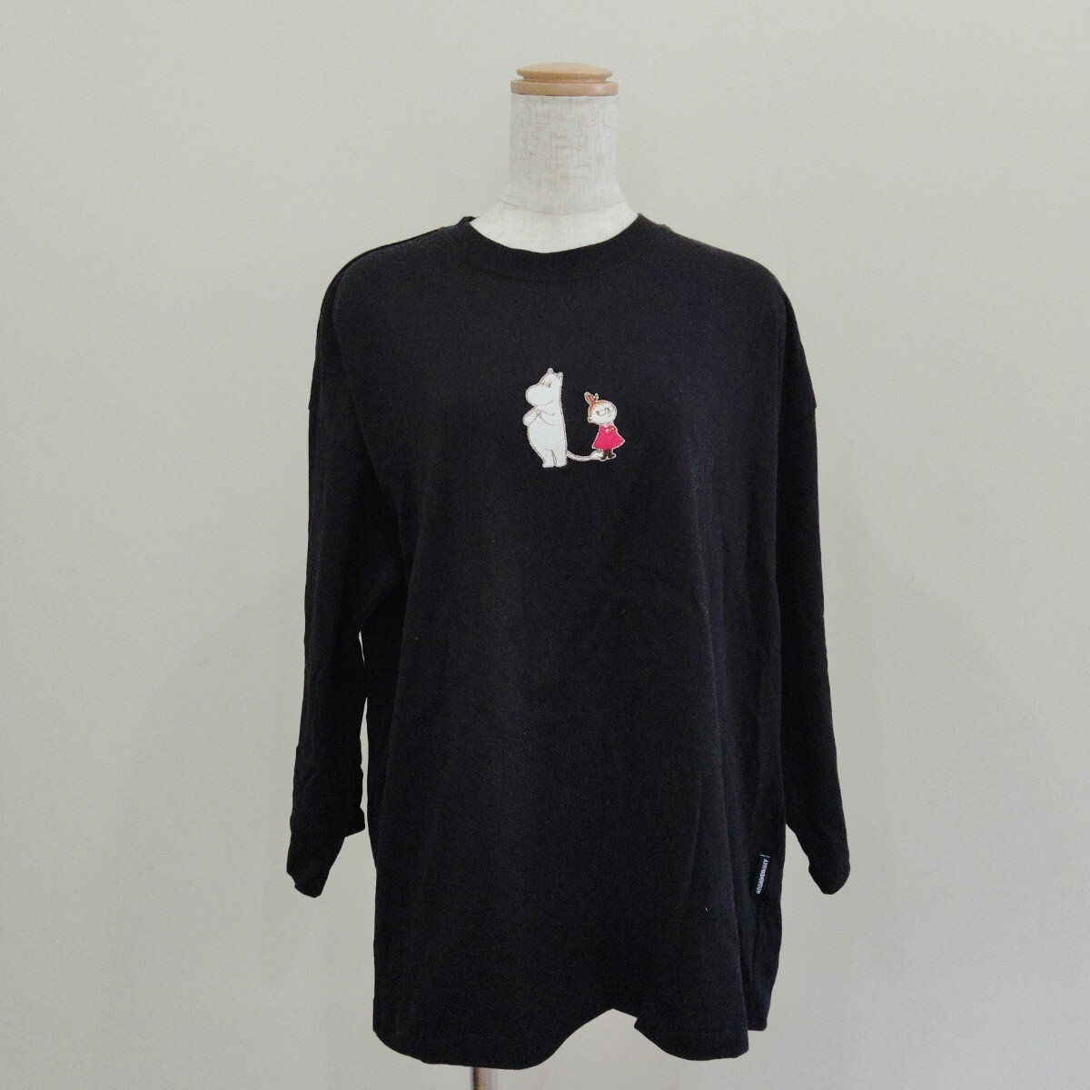 - 0144/3L/ムーミン谷のなかまたち SEASONREASON レディース Tシャツ カットソー 七分袖 ムーミン 黒