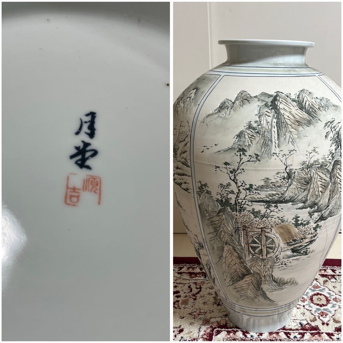 - 四季山水画装飾の陶器花瓶 白磁韓国 MONSTER 骨董品 美術品 限定品 壺 花器 花瓶 花入