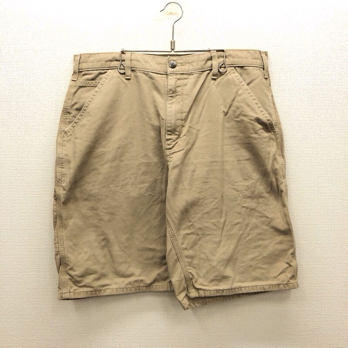 - 【GI037】Carhartt W36 ワークハーフパンツ ベージュ メンズブランド古着 カーハート ショートパンツ 送料無料