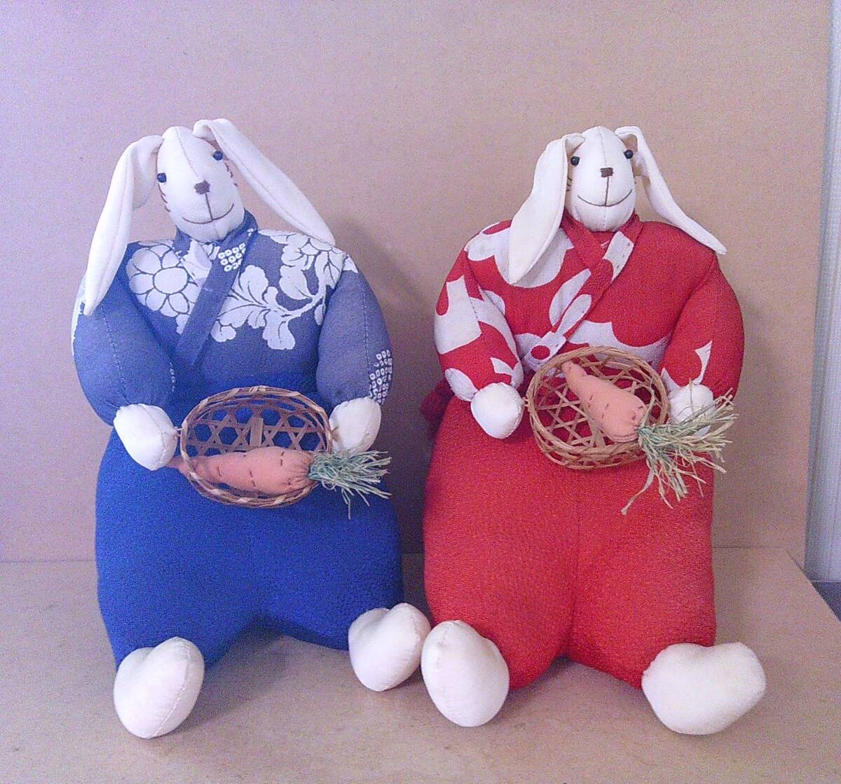 > ■ く-857 うさぎ ペア ぬいぐるみ 一対 保管品 人形 和風 ※単品約寸/最大:高22cm 幅13cm 奥19cm 総重量310.5g