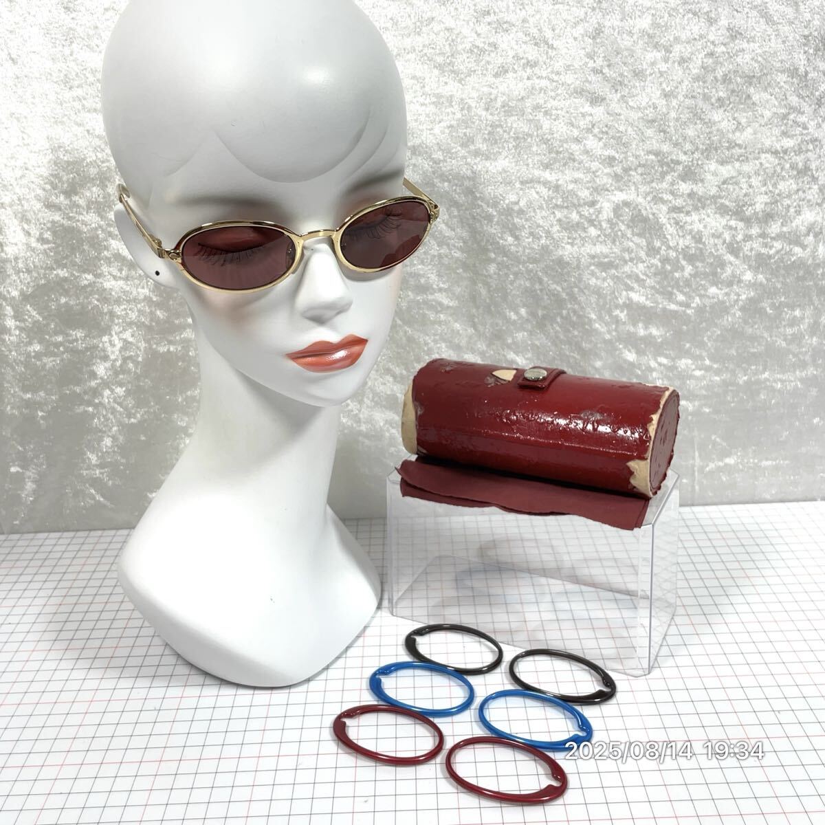 - 希少 vintage Ferragamo サルヴァトーレフェラガモ フルリム オーバル 着せ替えフレーム 三色カラー サングラス メガネ 装飾品 ケース付き