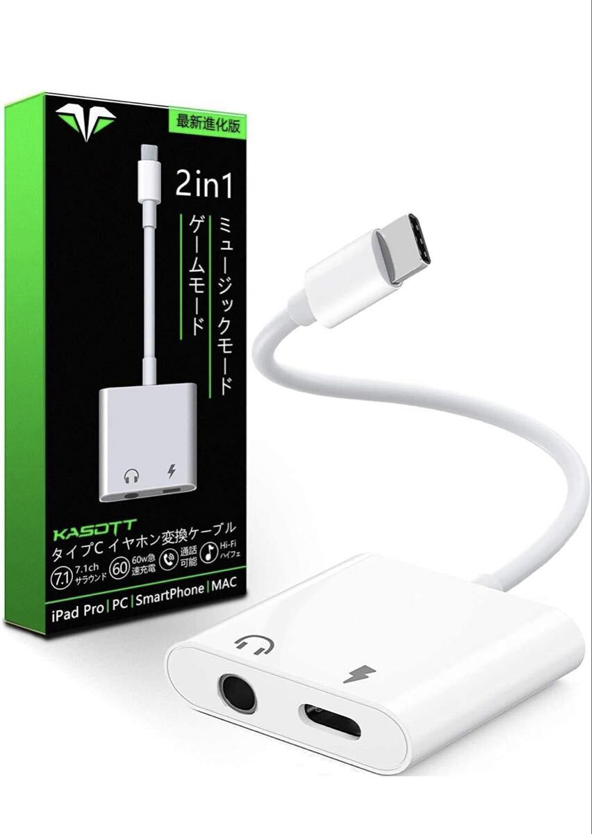 - 【2025改良版】2in1 タイプC イヤホン変換 ケーブル Type-C イヤホンジャック 3.5mm Aux端子 USB-C PDイヤホン