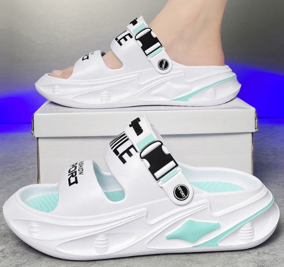 - 夏新作 オシャレ 厚底 スリッパ メンズ ビーチ リゾートサンダル 防滑 水陸両用 白青/27-27.5cm