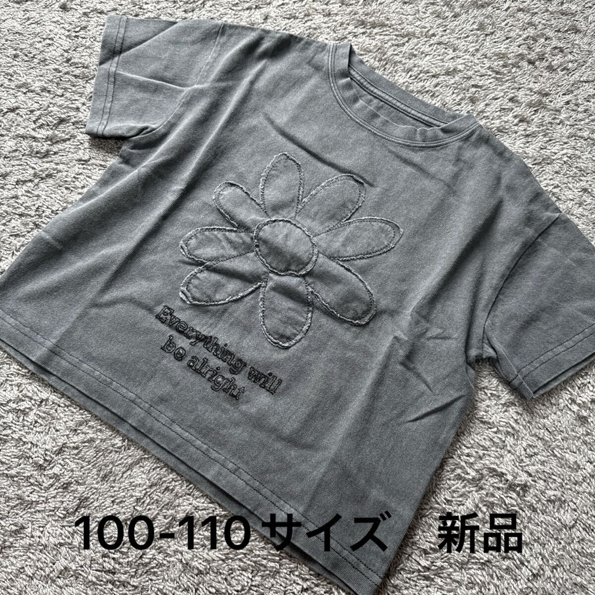 - こども服 花モチーフTシャツチャコール100-110★ゆうパケット配送可能★新品37
