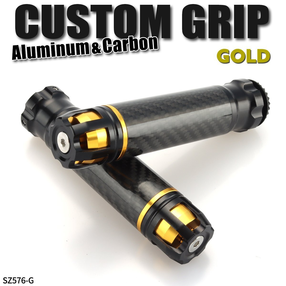 > バイク グリップ カーボン×アルミ カスタムグリップ 左右セット バーエンド付き 22.2mmハンドル用 ゴールド SZ576-G