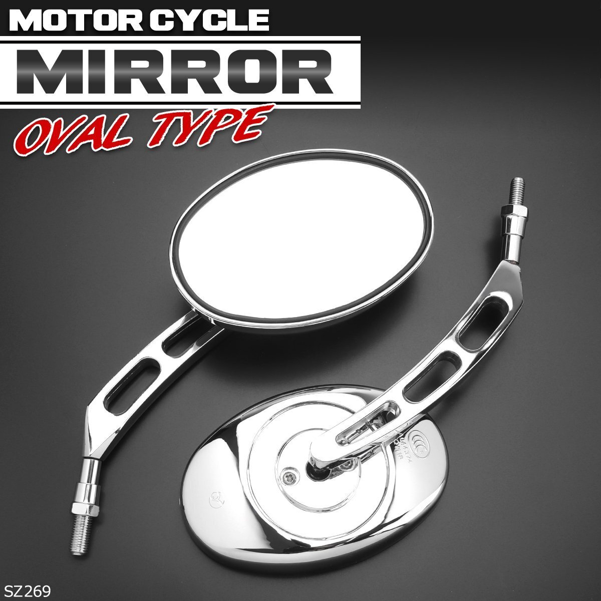 - 汎用 オーバル型 バレン ミラー クロムメッキ 左右セット M10 正ネジ バイク用 SZ269