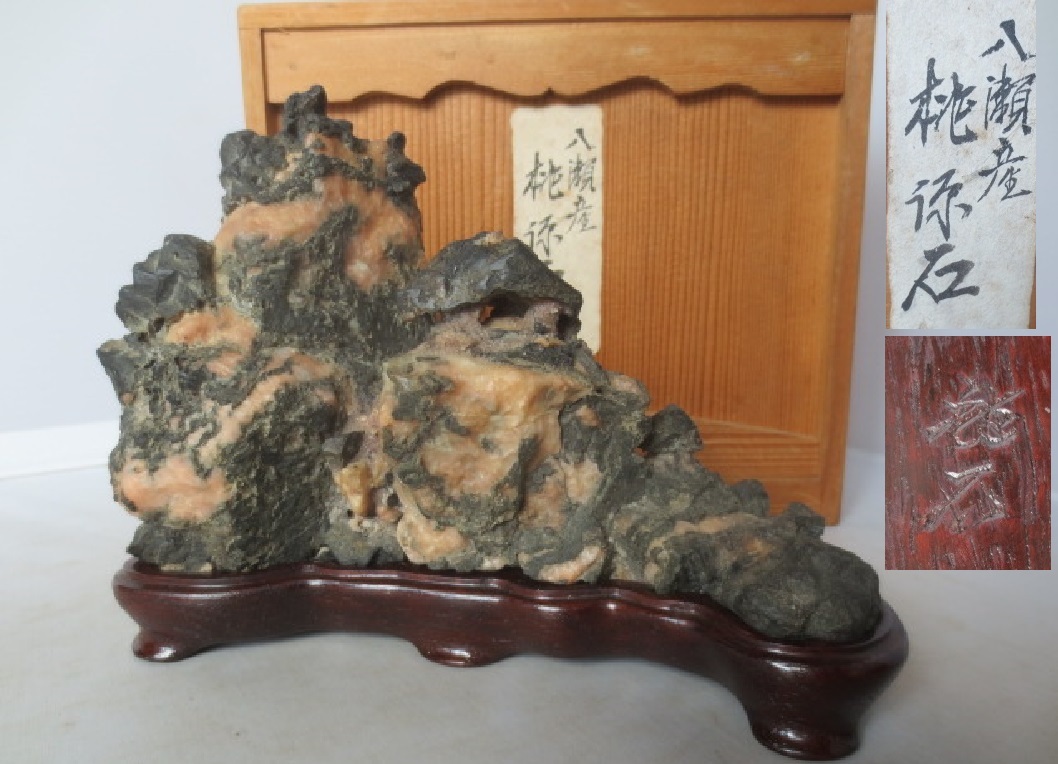 - 【艸】 R7/09/5-12 八瀬 桃源石 巌上茅舎 龍石台座 幅18㎝ 5sep1