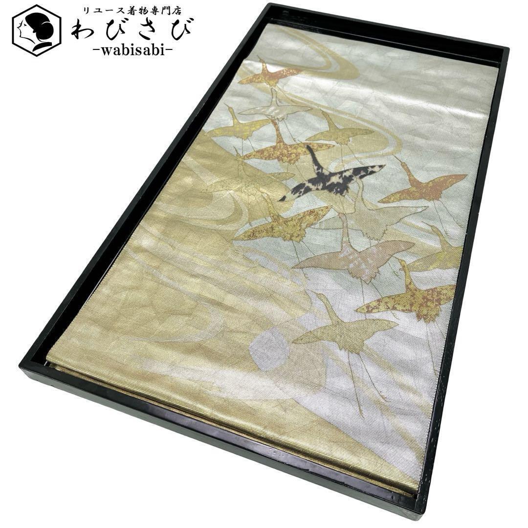 - 袋帯 螺鈿箔 流水に美しい飛翔鶴 O-4019 着物 きもの kimono 和服 和装 中古 リサイクル着物 【送料無料】
