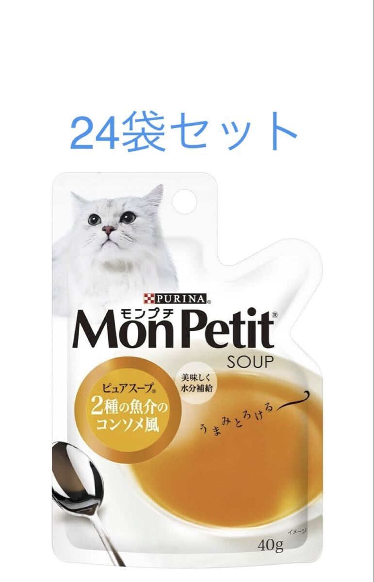 > モンプチ ピュアスープ 2種の魚介のコンソメ風 40g ×24袋セット ピュリナ 新品 賞味期限2026年7月以降