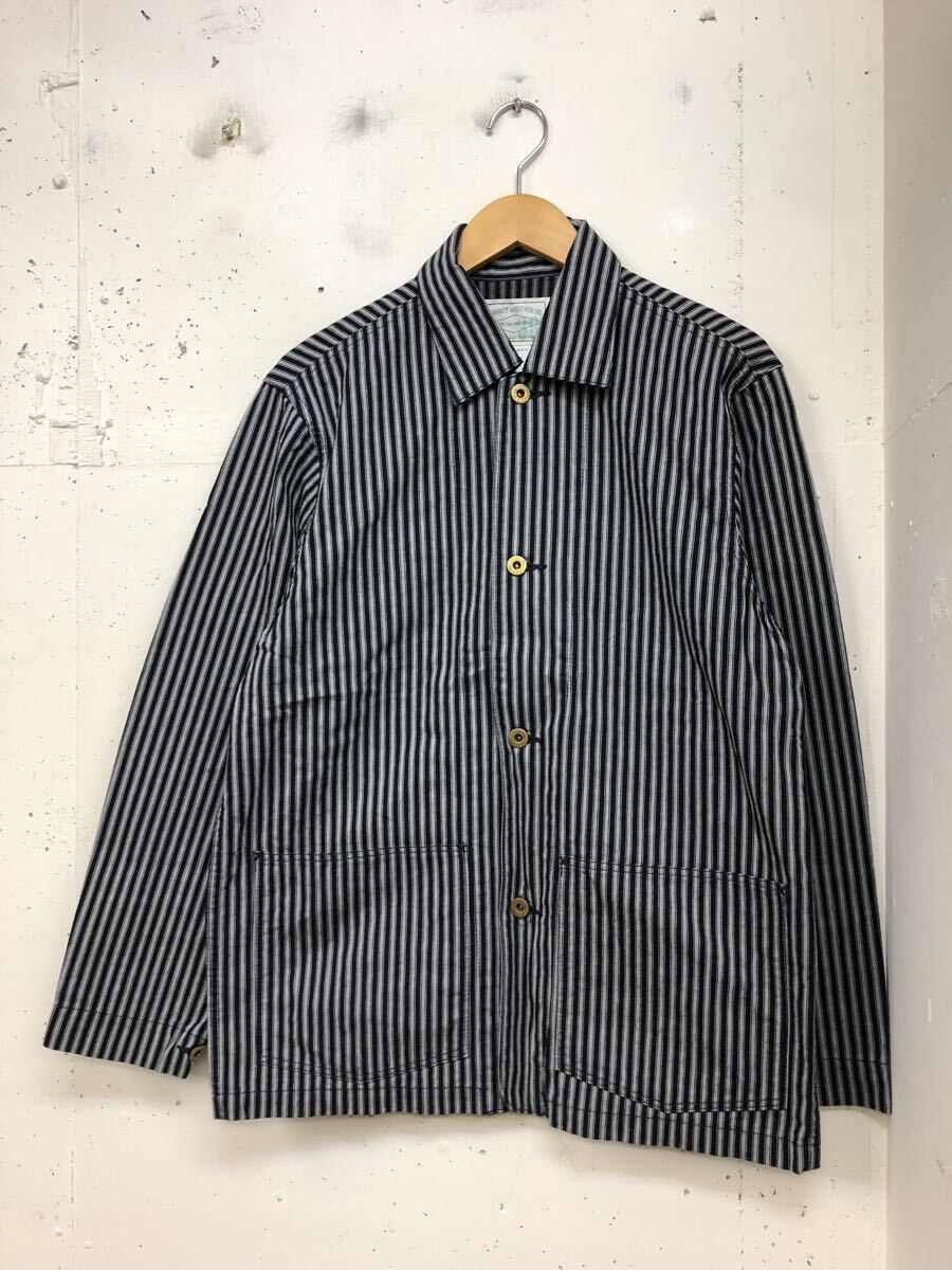 > 美品 ANDFAMILYS アンドファミリー ヒッコリーストライプ カバーオール ワークジャケット 38 M 黒グレー