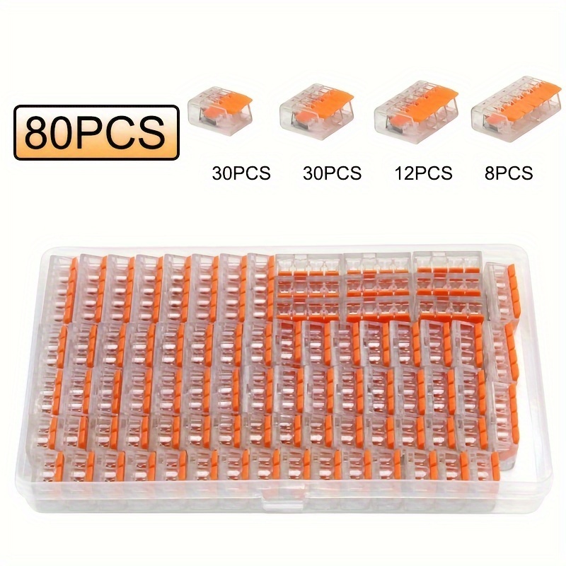 - 80個セット ワンタッチ 3種 配線接続コネクター 5出力 28-12 AWG 配線コネクター 差し込み 分岐 電線 パーツ 部品 双方向端子台 t8390