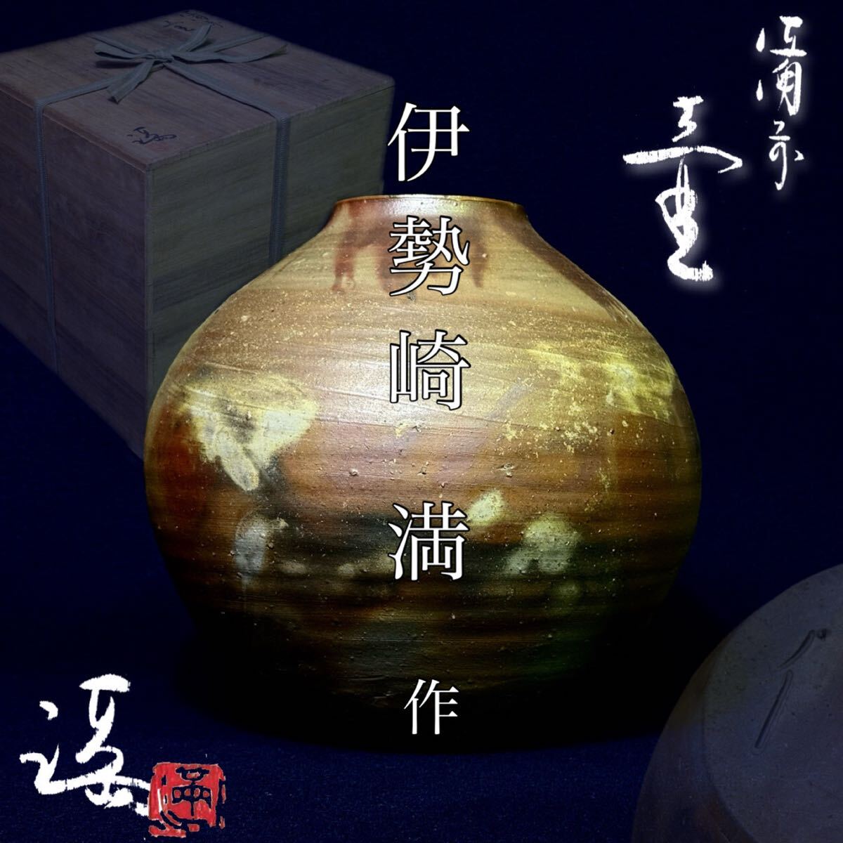 - MJ250903-8【真作保証・未使用】伊勢崎満 作 備前焼 大壺 壺 花瓶 岡山県重要無形文化財 共箱 高さ約28cm