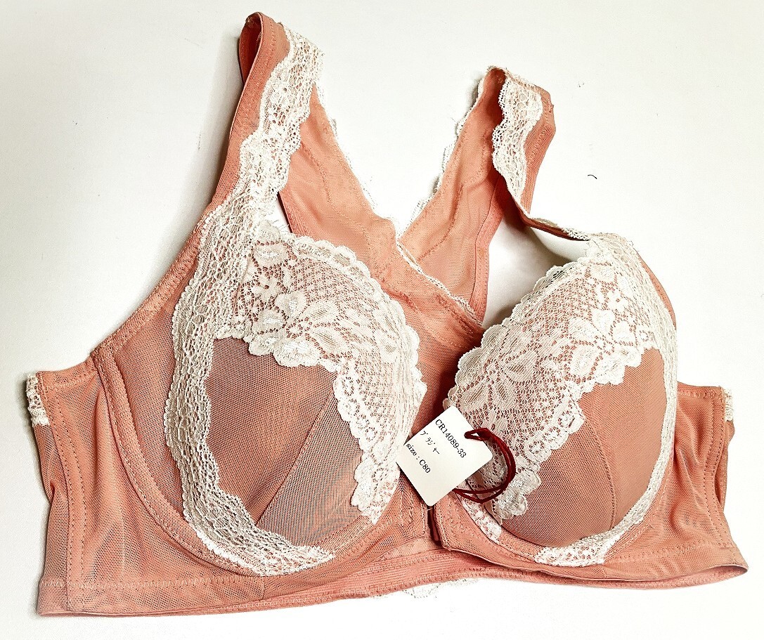 - CR14089-33 IB⑥【特価】新品 大きい ブラジャー C80 1枚 ピンク レース 花柄 刺しゅう 3/4カップ フロントホック 吸汗速乾 レディース