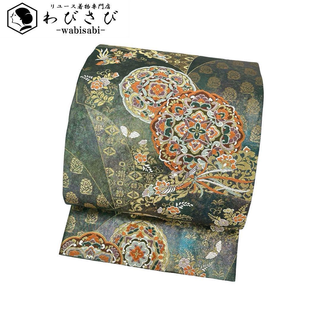 > 袋帯 地紙唐尊華丸 美しい華柄模様 鳳凰 黒木賊色 O-3812 着物 きもの kimono 和服 和装 中古 リサイクル着物 【送料無料】