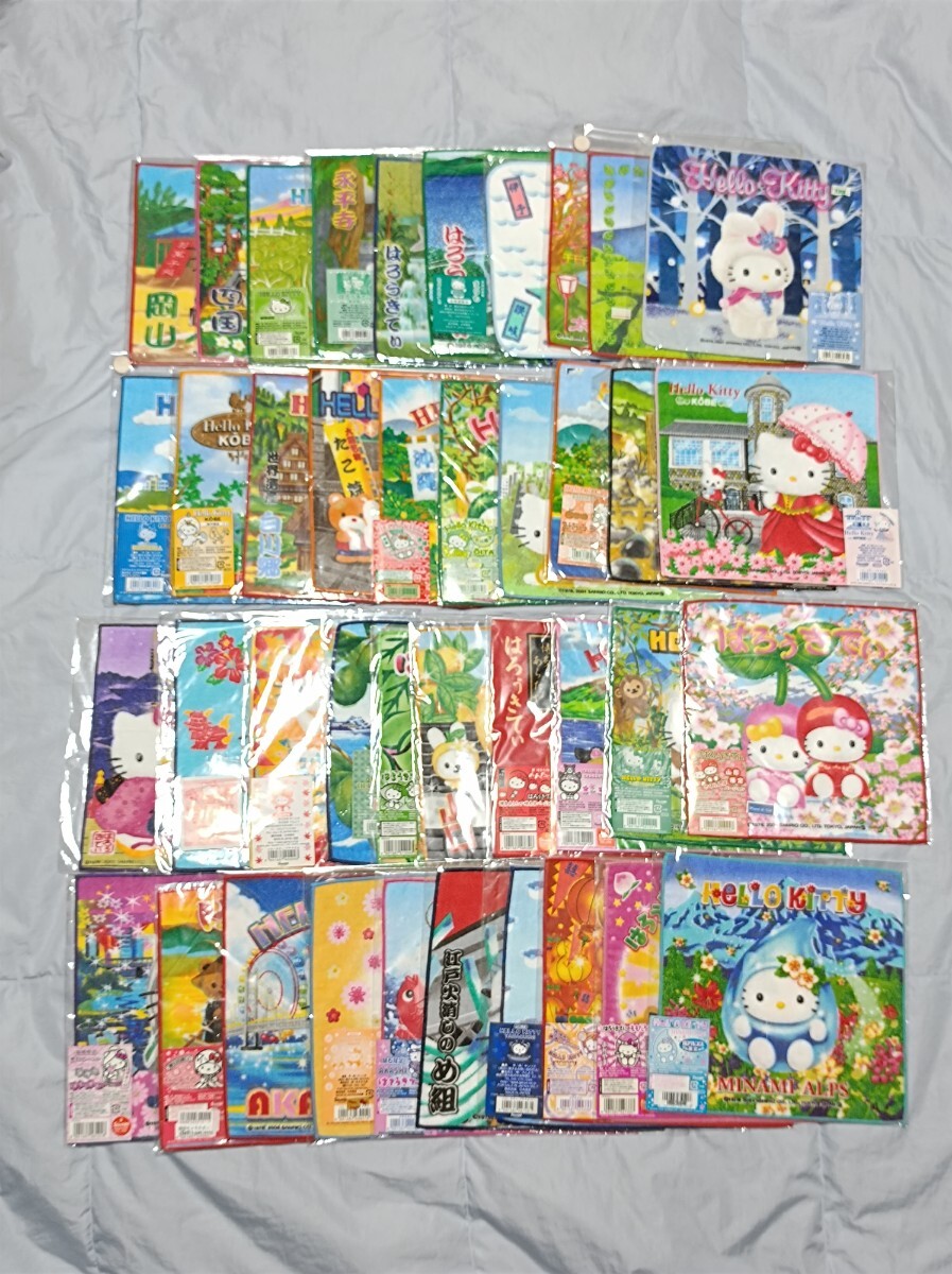 > 40枚 ハローキティ ご当地 ミニタオル 北海道 雪うさぎ 南アルプス 瀬戸の花嫁 神戸 貴婦人 さくらんぼ 大量 サンリオ Sanrio