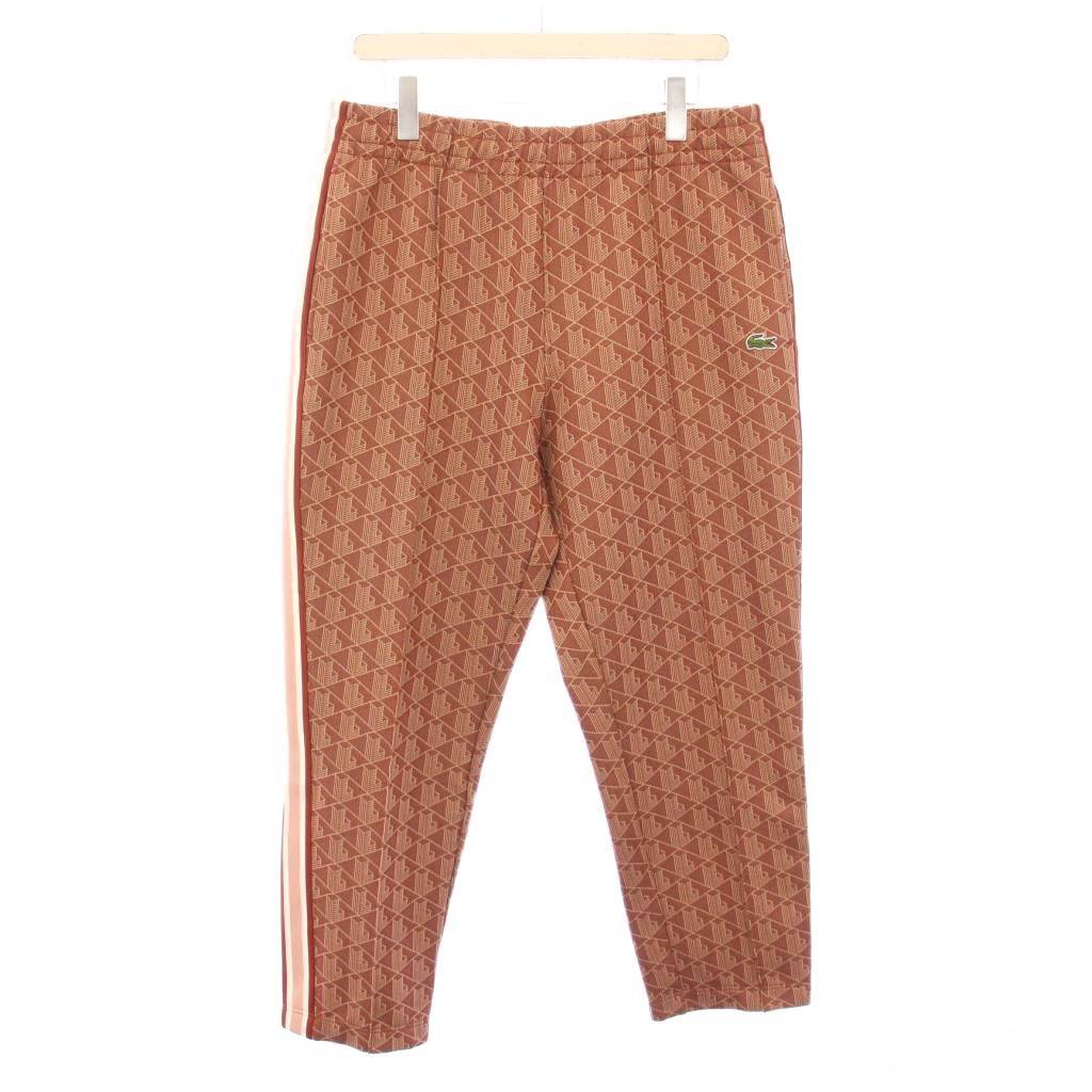 > ラコステ LACOSTE サイドテーピングモノグラムジャカードトラックパンツ イージー スラックス ウエストゴム ストレッチ 総柄 ロゴ L 茶