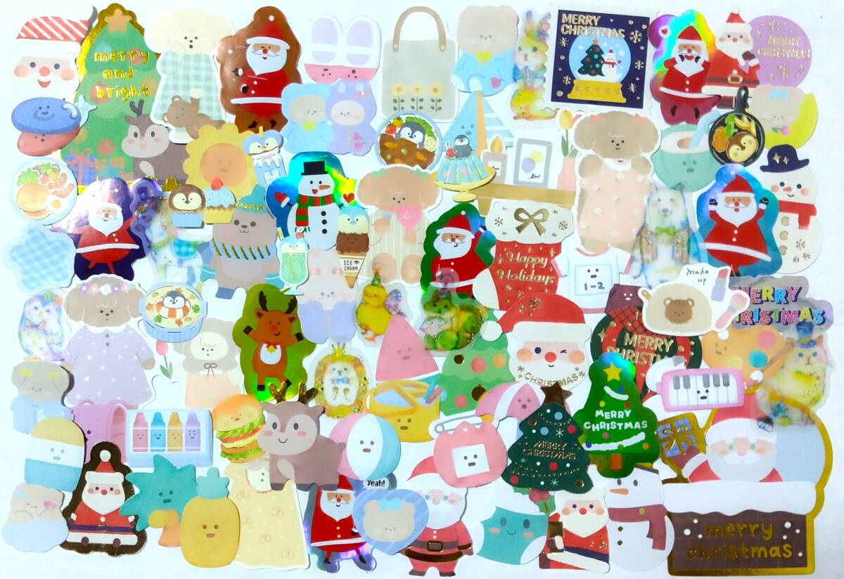 - 新品&即決 フレークシール 全柄違い 80枚/動物 猫 うさぎ/クリスマス サンタ トナカイ/学校 文房具/サマー 夏/フード ペンギン/送料無料
