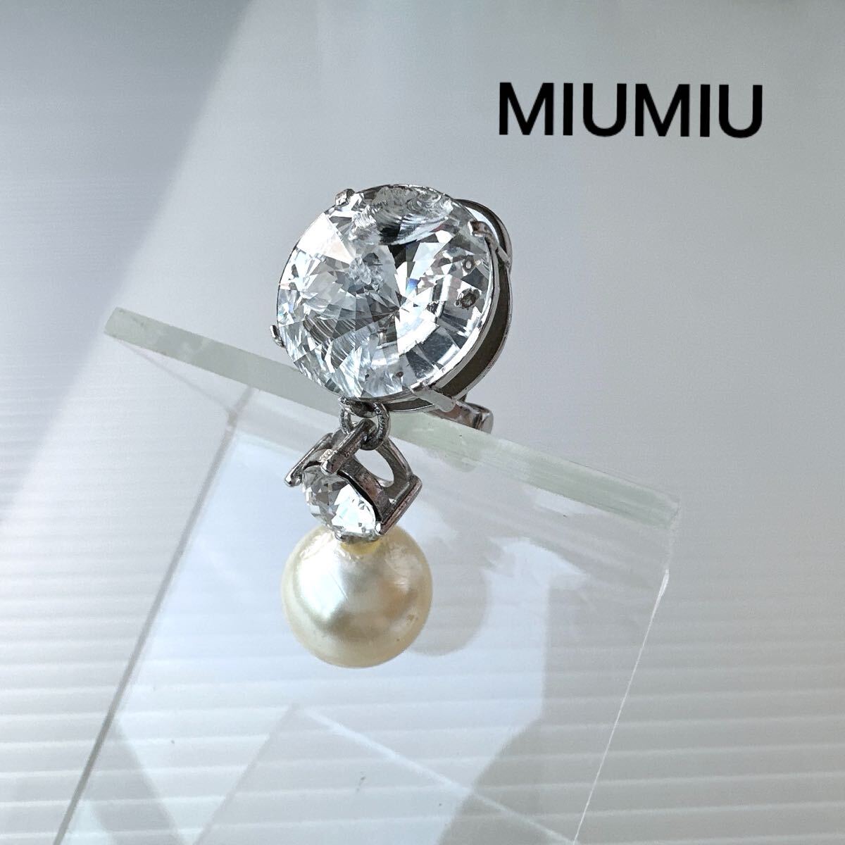 - MIUMIU ミュウミュウ クリップ式 イヤリング ピアス クリスタル パール 片耳 シルバー レーディス アクセサリー ドロップピアス