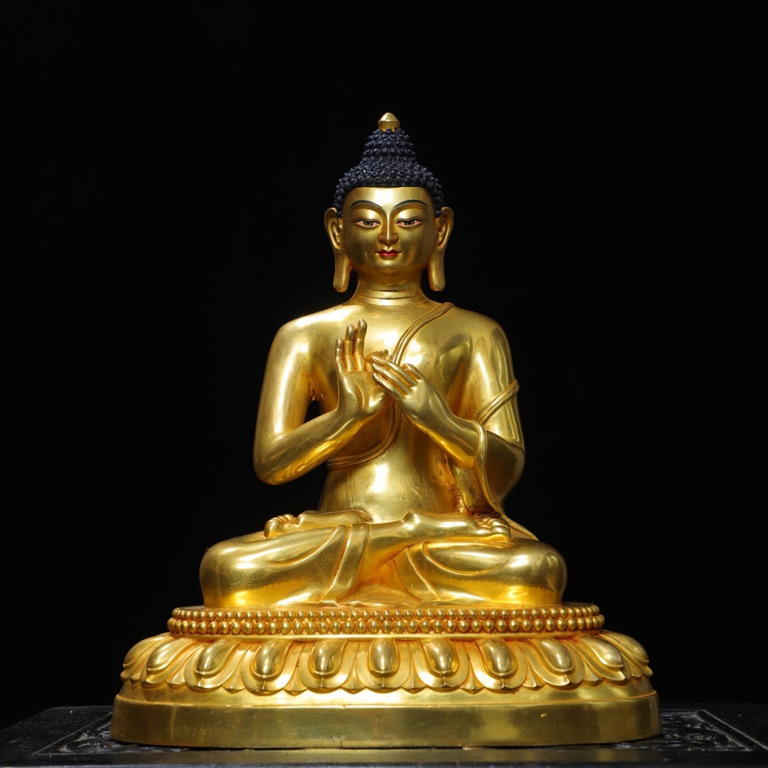 - ◆珍蔵◆中国古美術 明時代 古銅製 塗金 釈迦牟尼 仏造像 細密細工造 置物 擺件 古賞物 骨董 時代物 A01