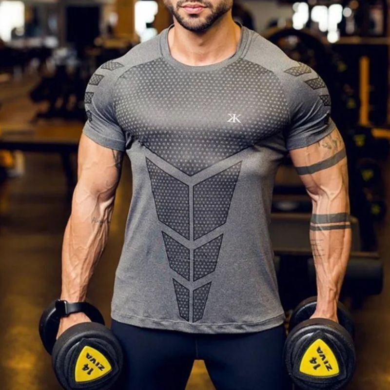 - 【グレー XL】メンズ ドライTシャツ 半袖 トレーニングウェア ジムウェア 加圧 ボディビル フィットネス