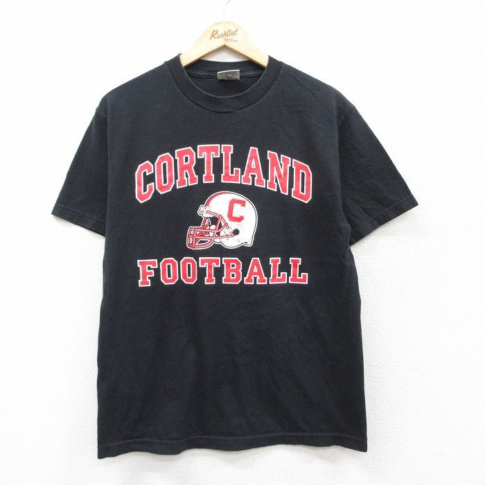 > M/古着 半袖 ビンテージ Tシャツ メンズ 90s コートランド フットボール コットン クルーネック 黒 ブラック 25sep01 中古