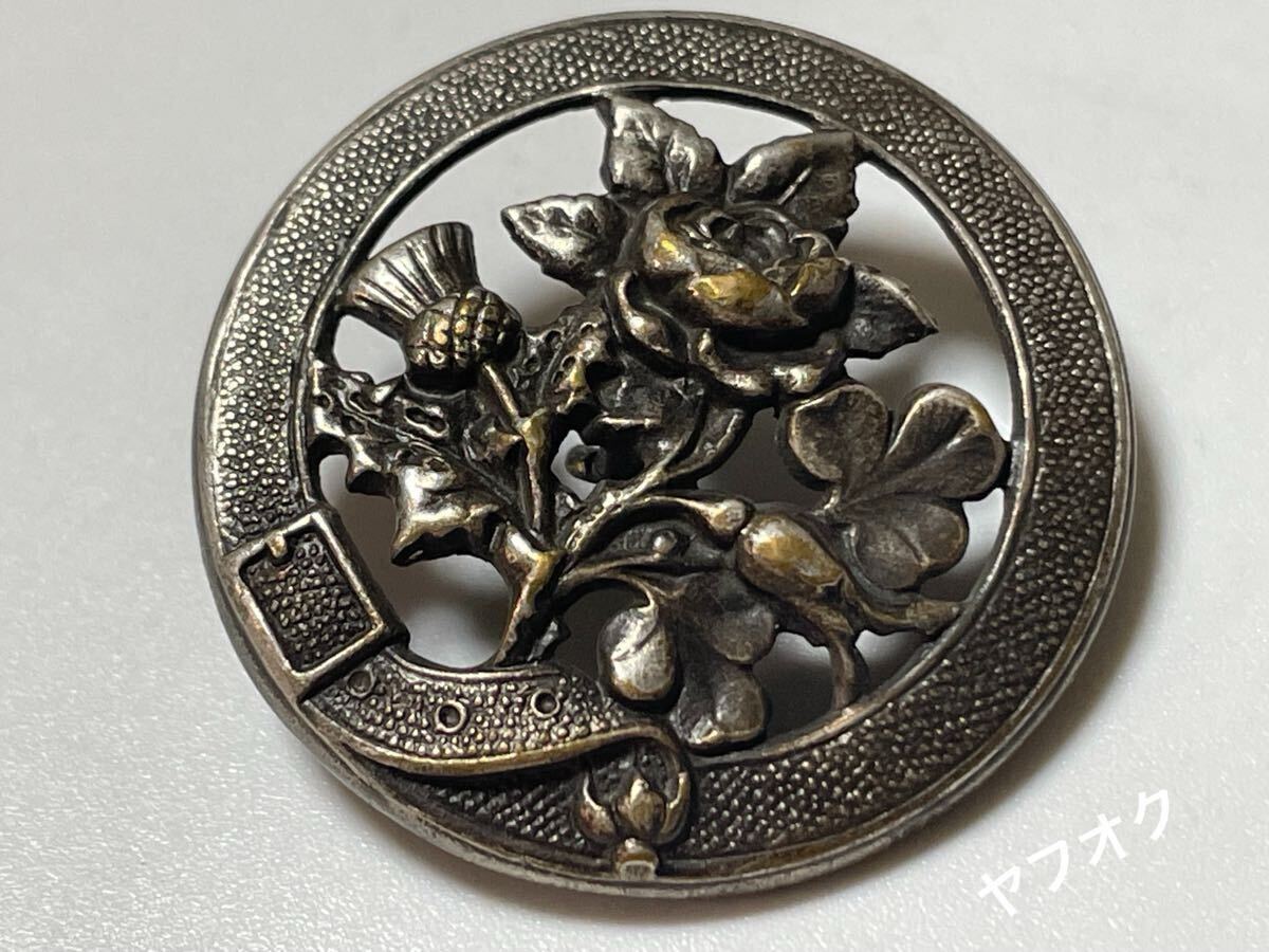 - メタルボタン 1個 フランス アンティーク ヴィンテージ 27.5ミリ 透かし フラワー バラ 250906-3