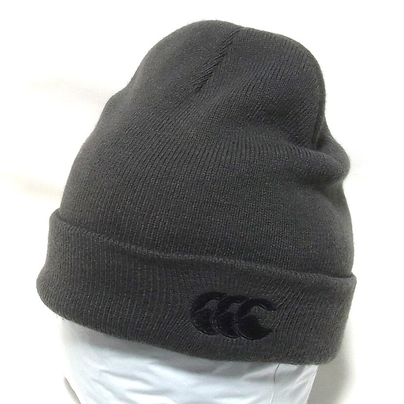 > カンタベリー 美品 CANTERBURY 濃グレー ニットキャップ◎濃灰 定番のロゴ刺繍 ニット帽 ビーニー◎清掃済 送料無料