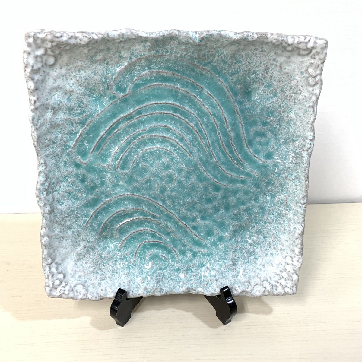 萬古焼 角皿 飾皿 大皿 和食器 ブルー王朝 足付10号 正角皿 31cm 足付き(09067A