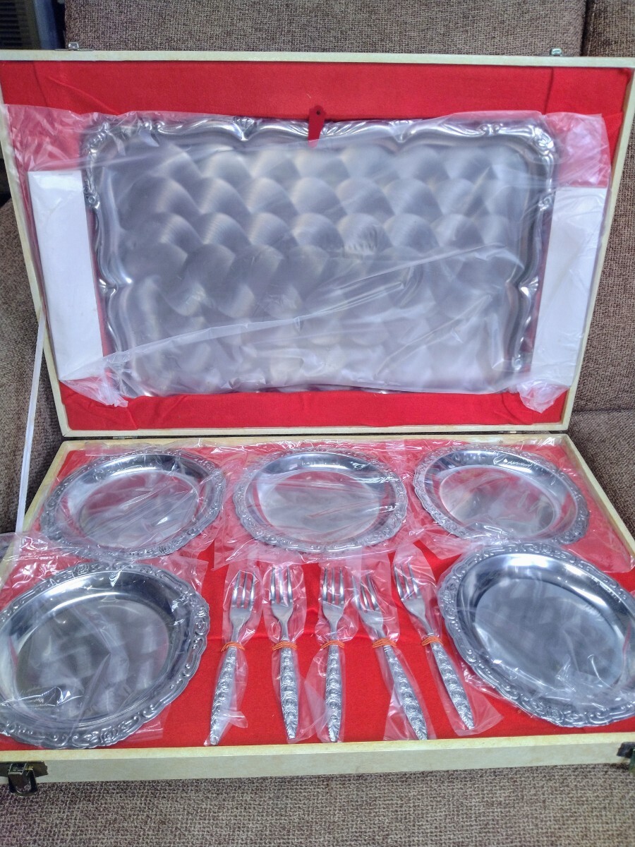 - K358【未使用/長期保管品】 サービストレー シャトー 昭和レトロ お盆 銘々皿 フォーク
