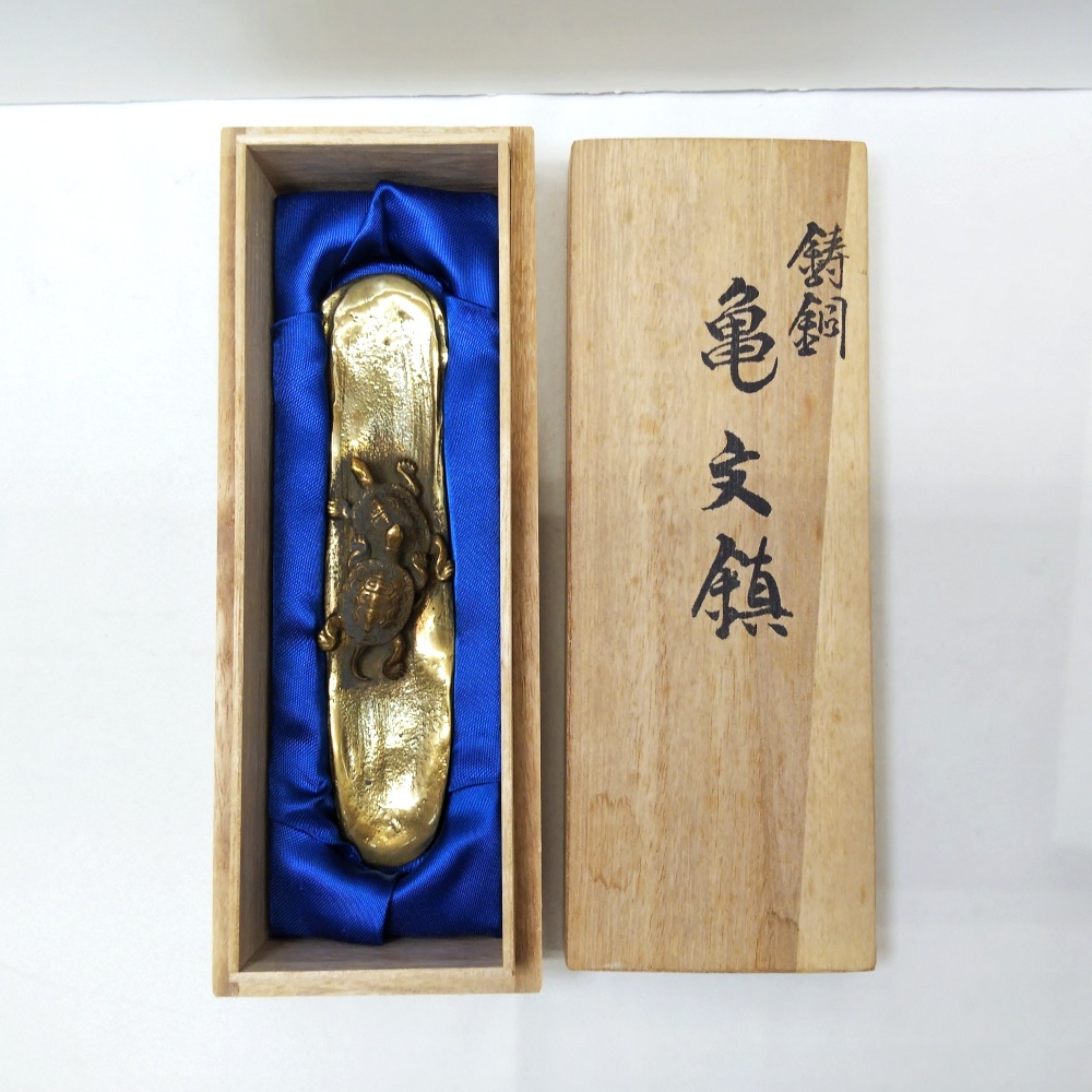 - B25-1736 須賀月真 鋳銅 亀文鎮 瑞峰堂謹製 金属工芸 共箱/経歴/栞付き