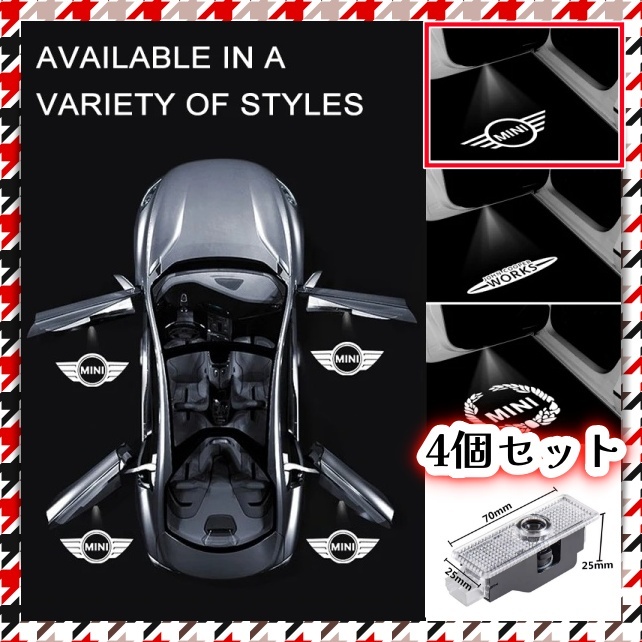 - 4個 mini ミニクーパー ウェルカムランプ ドアライト カーテシ LED ロゴ投影 プロジェクター BMW r55 r56 r50 r53 r60 r61 f54 f55 f56 f60