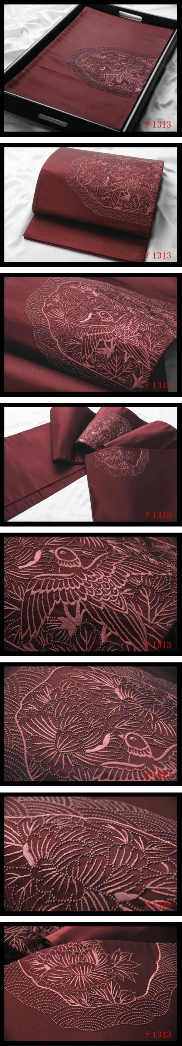 - 蔵【テ1313】西陣逸品 相良刺繍 花鳥古典紋 蘇芳色 正絹太鼓柄高級美術袋帯 新品同様 ◇検◇簪着物名古屋帯和装小物帯締め