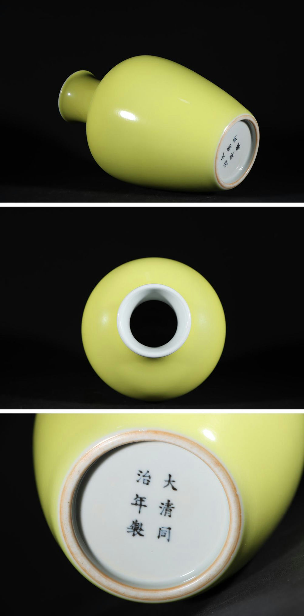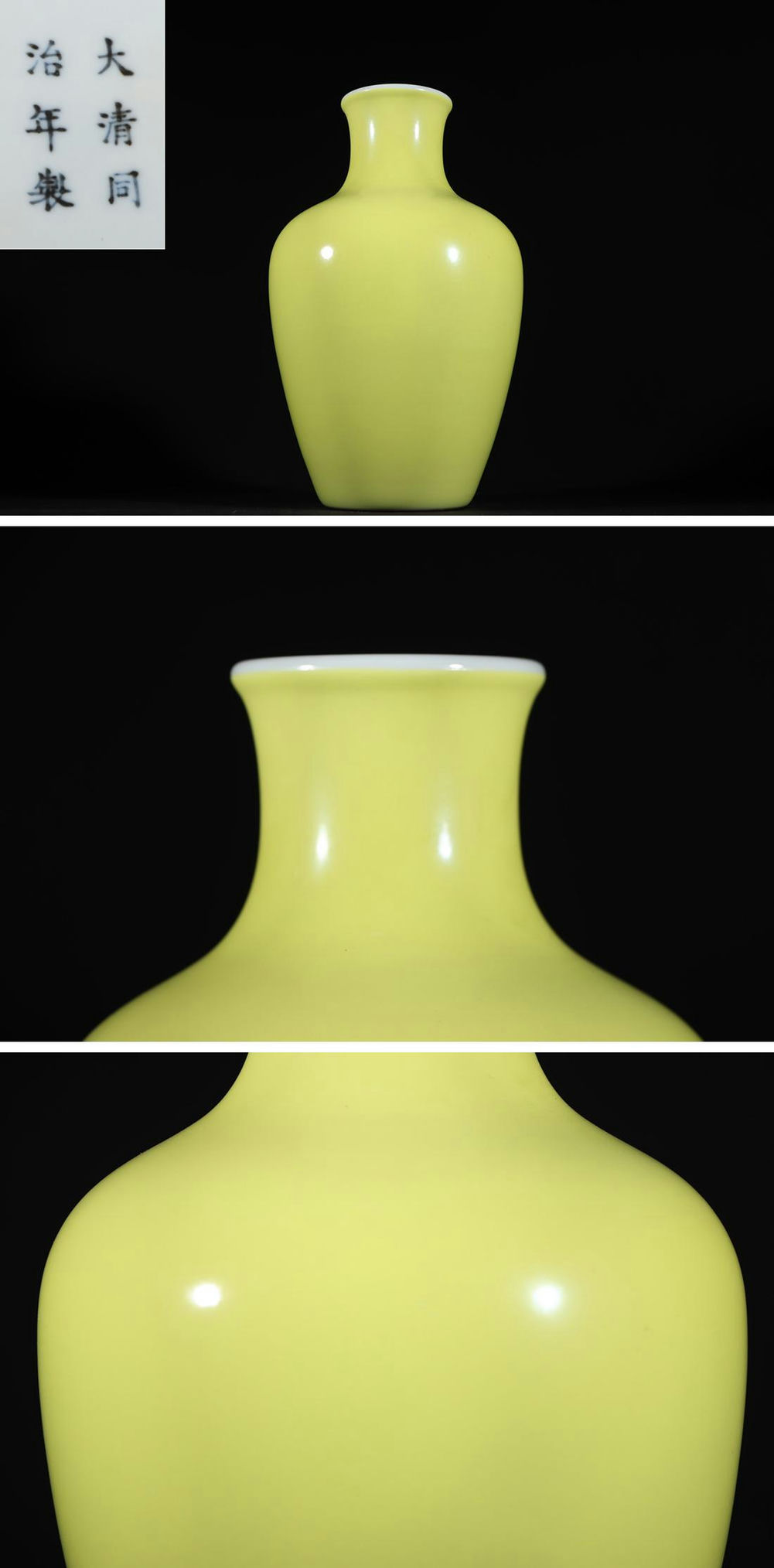 - ◆羽彰・古美術◆Y0538清時代 同治檸檬黄釉瓶・時代物・古陶磁・古賞物・旧家買出品