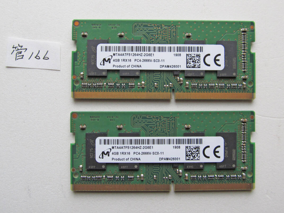 > ★送料無料!★Micron ノートPC用メモリー★DDR4-2666 (PC4-21300) 4GB ×2枚 計8GB★動作確認済み 中古品★管166★