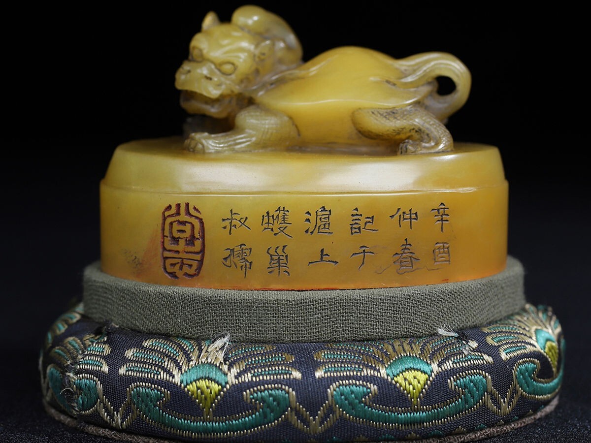 - 「清末民初 叔孺篆 老寿山石 田黄石彫り 龍竜鈕印章」極細工 擺件 古賞物 中国古美術 旧蔵出
