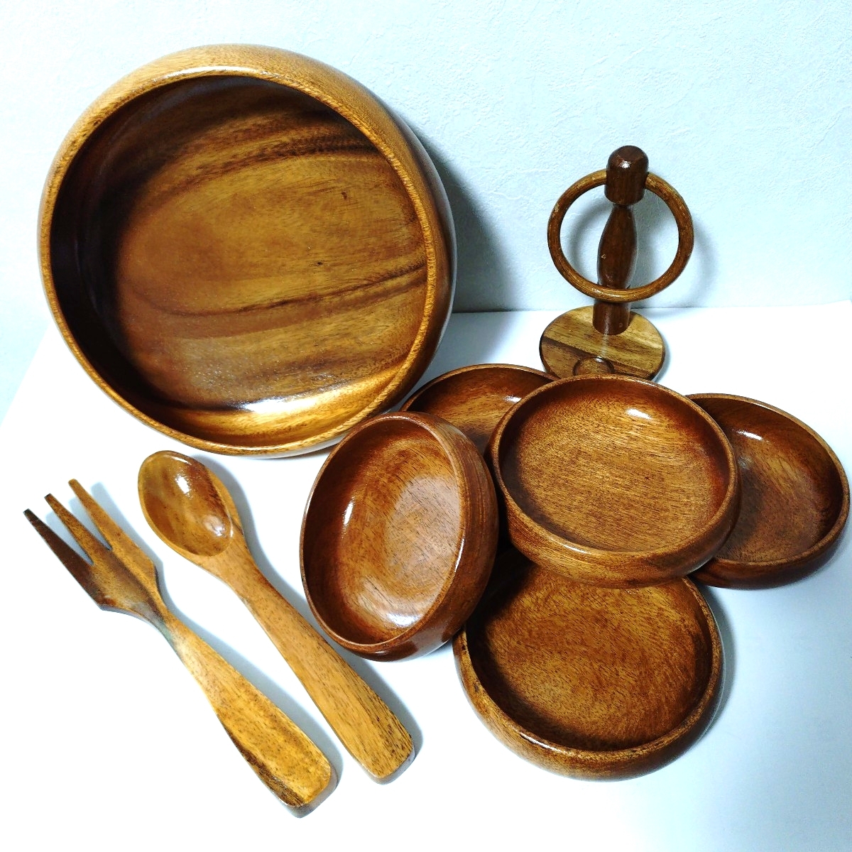 - WOOD COLLECTION 天然木サラダボウル&スプーン、フォーク9点セット