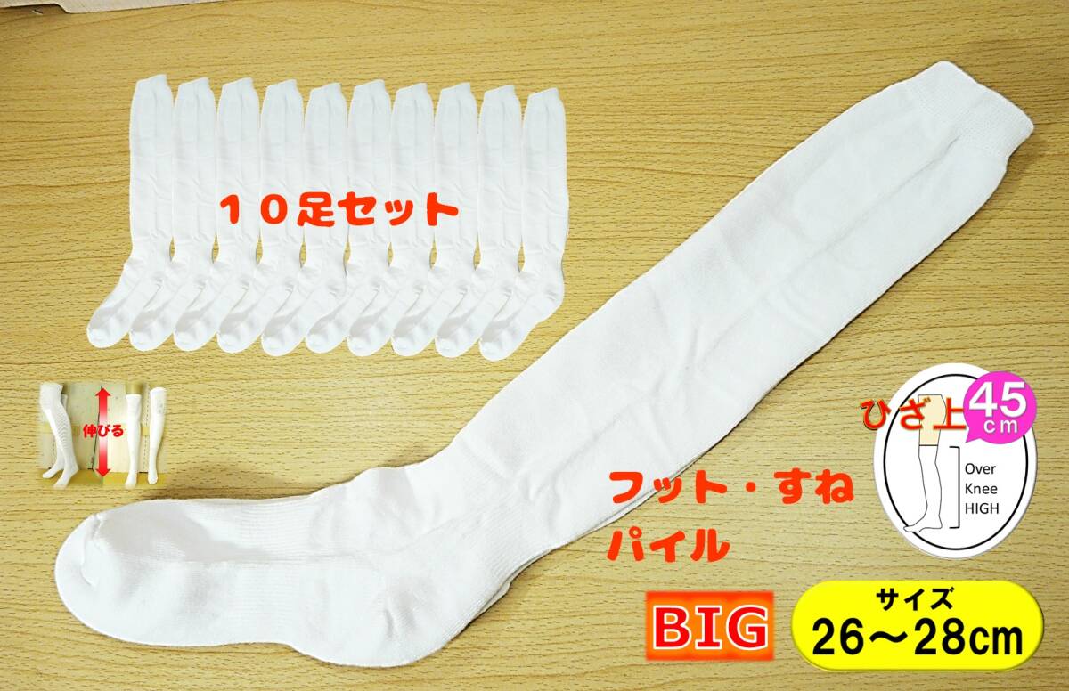 > 【未使用品★レッグウェア】工場直売◆白 ハイソックス◆アンダーソックス 10足◆厚手◆足底・かかと・すねパイル◆26-28cm◆よく伸びる◆