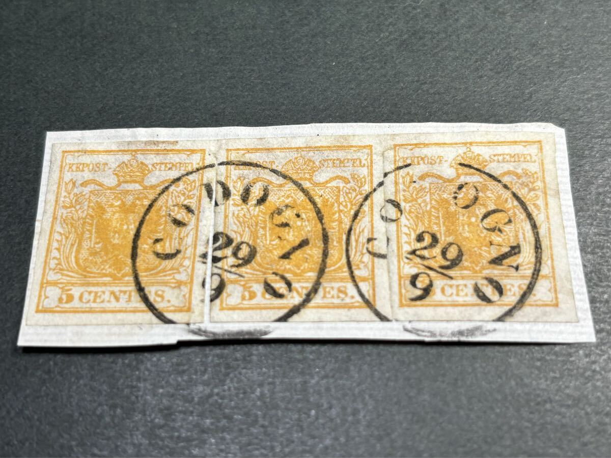 - 購入49,000円 ロンバルディア・ベネツィア 一番切手 1850年 発行 使用済 最低額面 3枚オンピース ヨーロッパ 海外 世界
