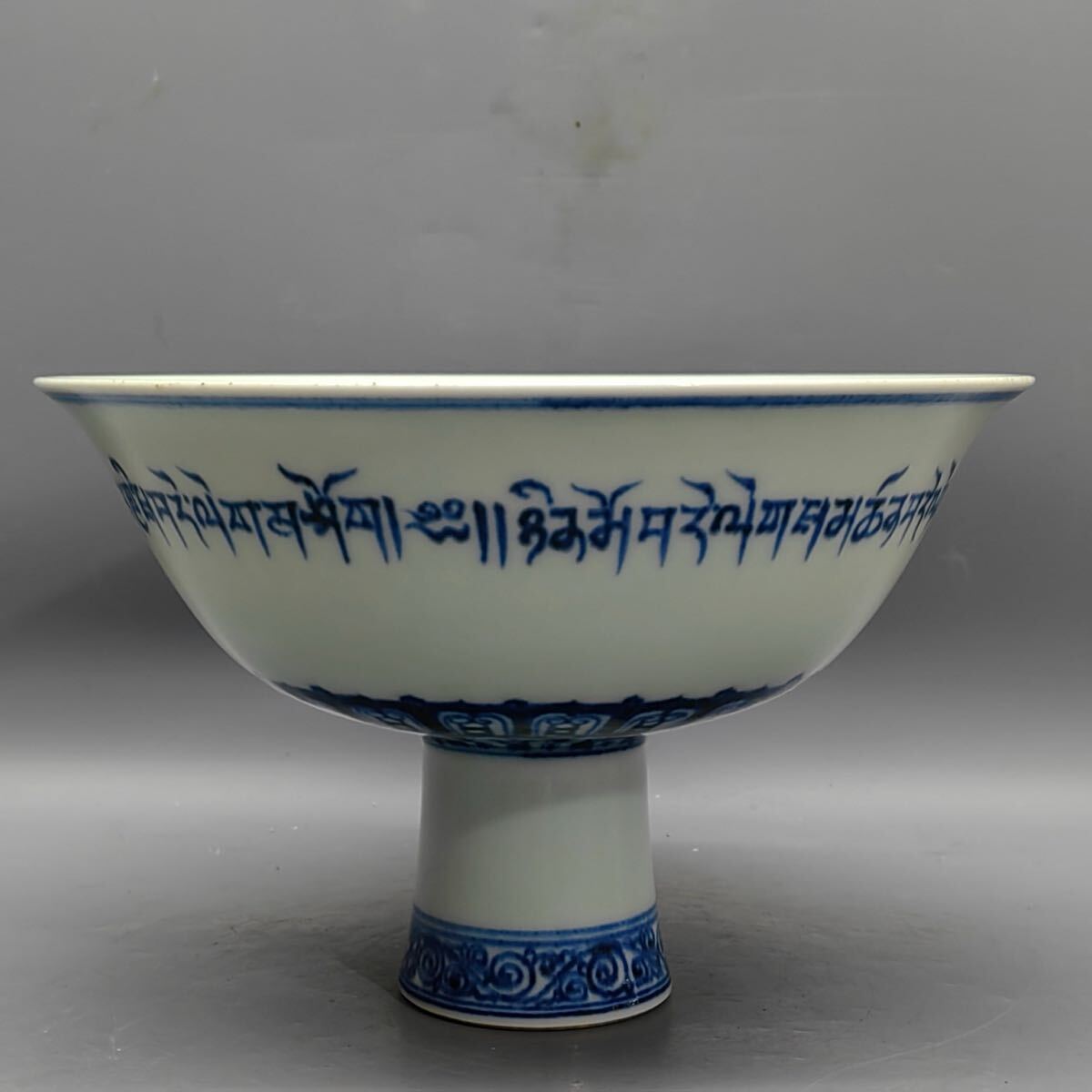 - 【竹河】中国古美術 清時代 青花 高足 茶碗 茶道具 抹茶碗 古玩 骨董 時代物 当時物 ci65