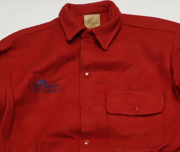 > WJ68ウールジャケットUNKNOWNアメリカ古着カナダ製シャツジャケット80’S90’SビンテージLビッグサイズ赤系ユニホーム右胸文字刺繍オールド