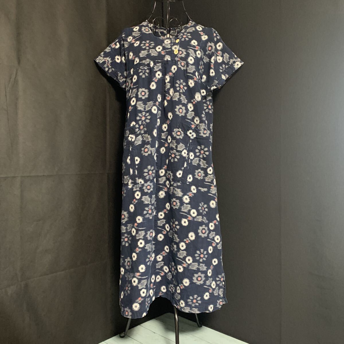- ☆ワンピース 半袖 着物 チュニック 花柄 レトロ 生地 リメイク素材 ハンドメイド 古布 型染め 絣 手作り パッチワーク かすり(A-2988)