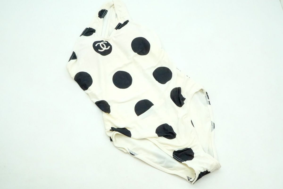 > シャネル 38(約M) ワンショルダー ボディースーツ ココマーク CCロゴ カップ付き ドット ストレッチ 衣類 服 白 ホワイト CHANEL 3523c