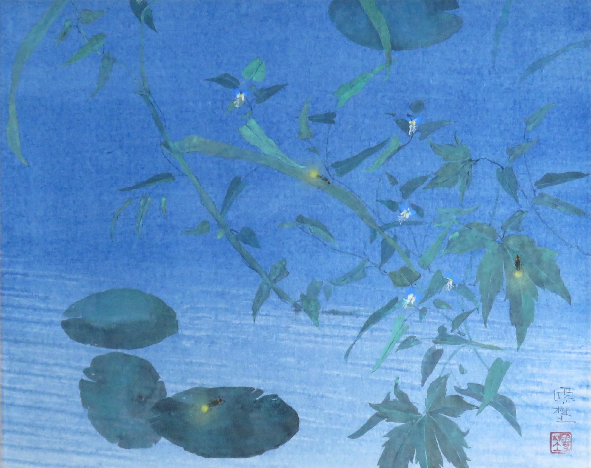 - JY1078◆◇掛軸 坂本雪埜 「螢」尺八横 共箱 尺八横 現代作家新作掛軸◇◆初夏 普段掛け