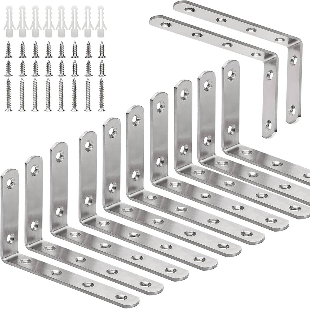 - L字金具 ステンレス製 15個 棚受け L字ステー L型金具 補強金具 固定金具 地震対策 耐震 転倒防止 アングルブラケット 125*75*20mm
