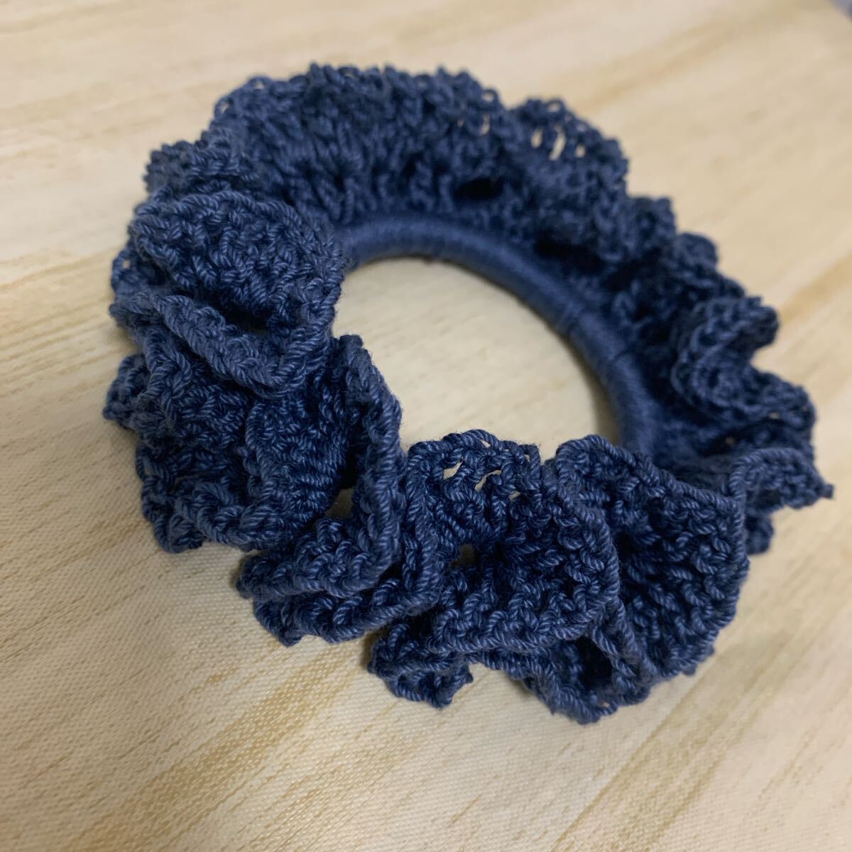 - 【d29】かぎ針 シンプル インディゴ ネイビー レース糸 フリル シュシュ