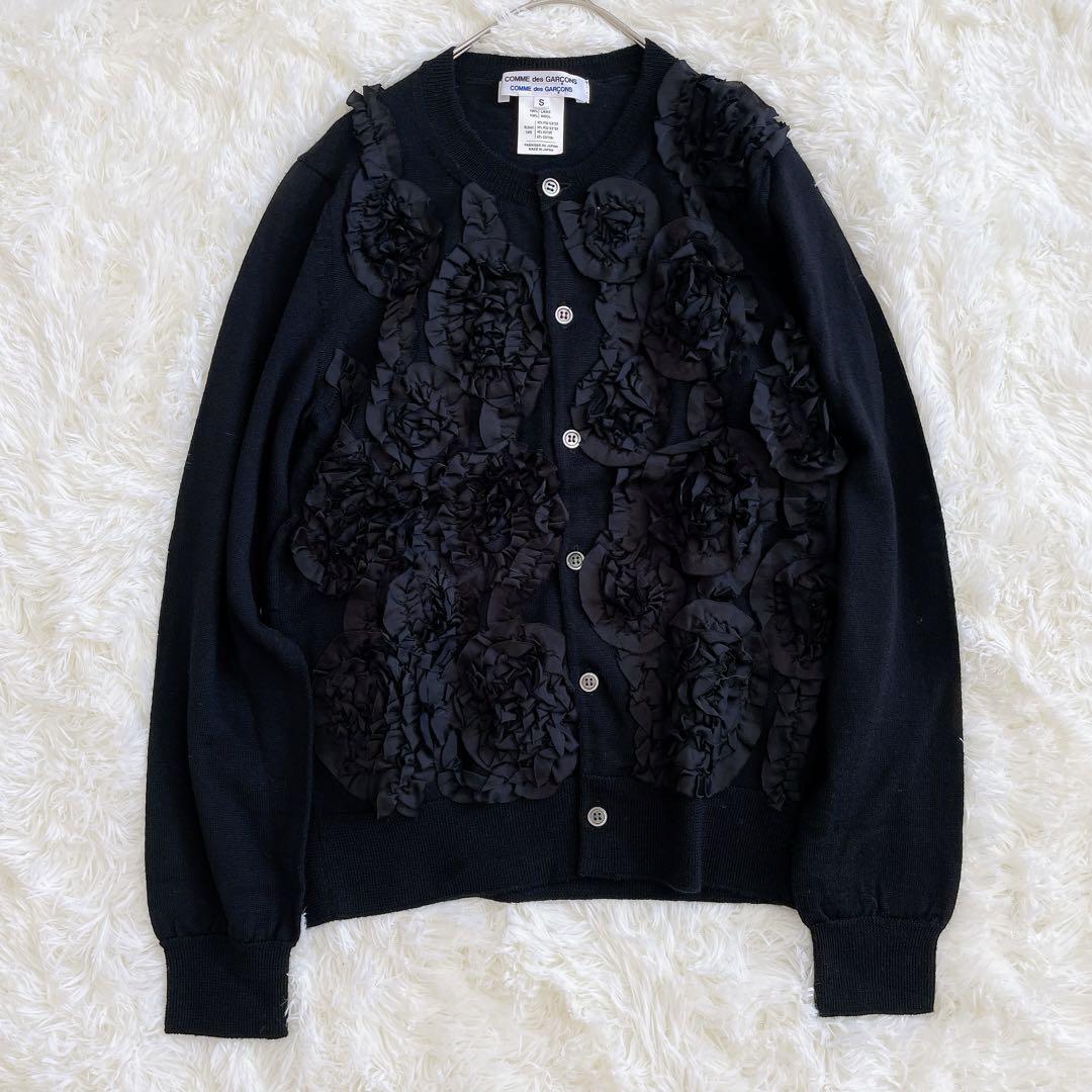 - 希少薔薇デザイン COMME des GARONS コムデギャルソン 薔薇 バラ 花柄 総柄フラワー装飾 カーディガン ブラック Sサイズ コムコム