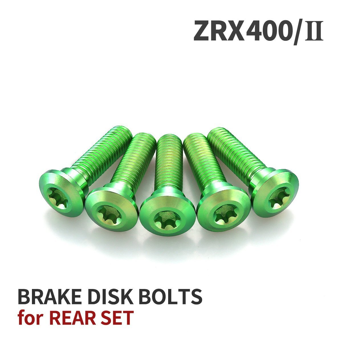 > ZRX400/Ⅱ 64チタン ブレーキディスクローター ボルト リア用 5本セット M8 P1.25 カワサキ車用 グリーン JA22020