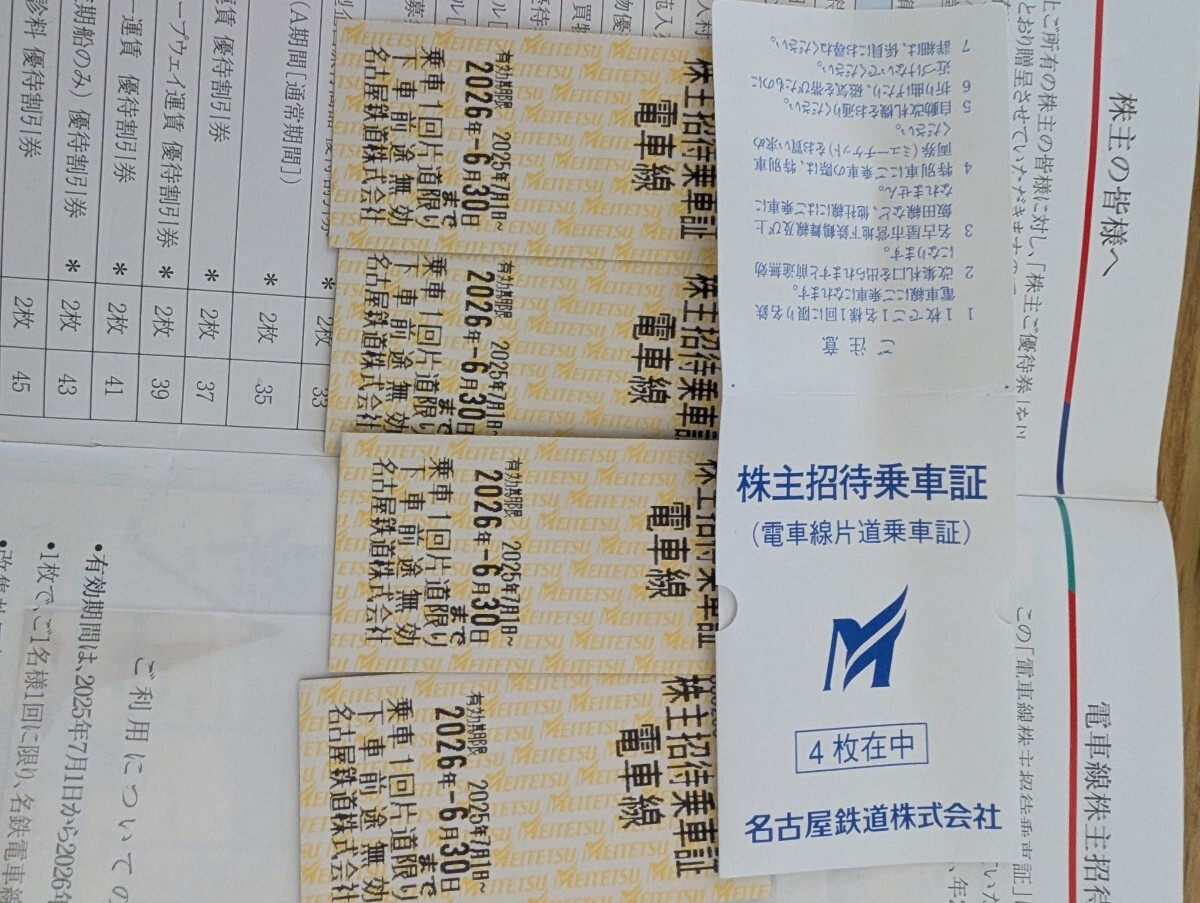 - 名古屋鉄道 株主優待乗車証 乗車券2026年6月30日まで有効4枚セット